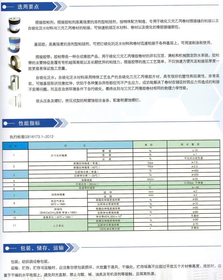 三元乙丙橡胶(EPDM)防水卷材