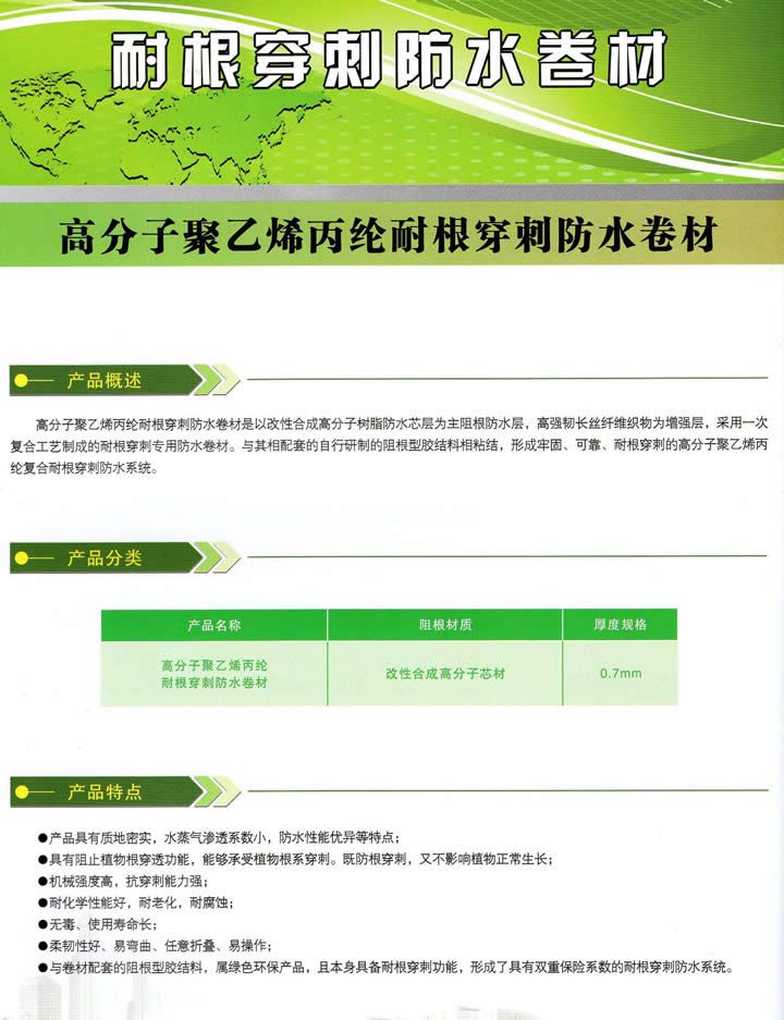 高分子聚乙烯丙纶耐根穿刺防水卷材