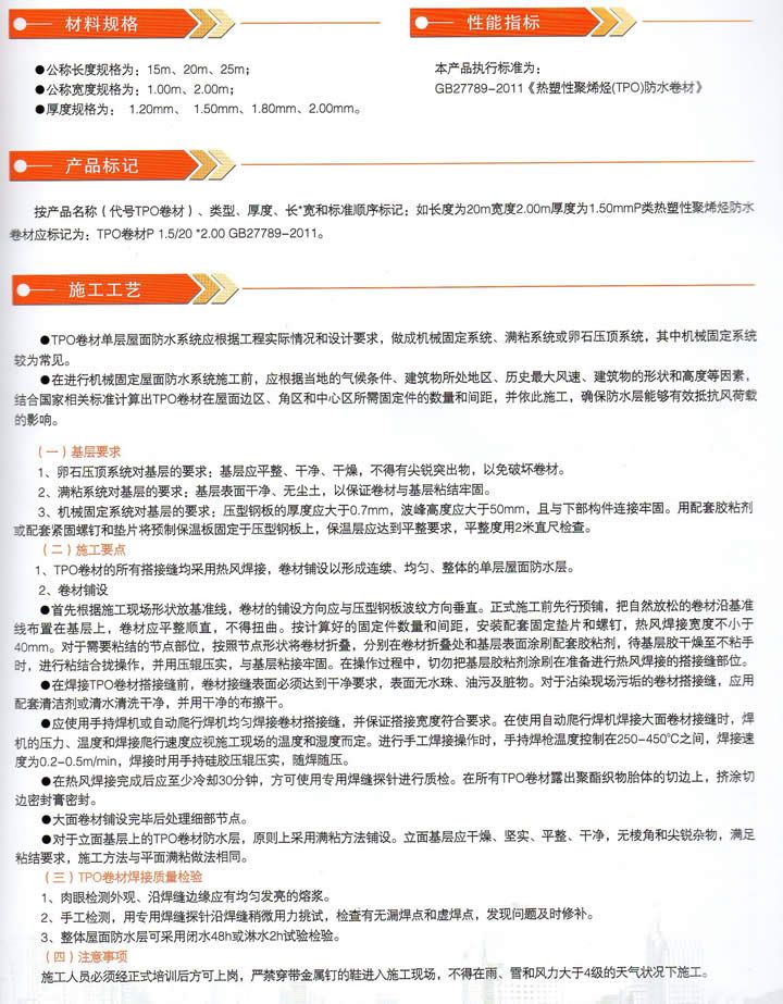 热塑性聚烯烃(TPO)防水卷材